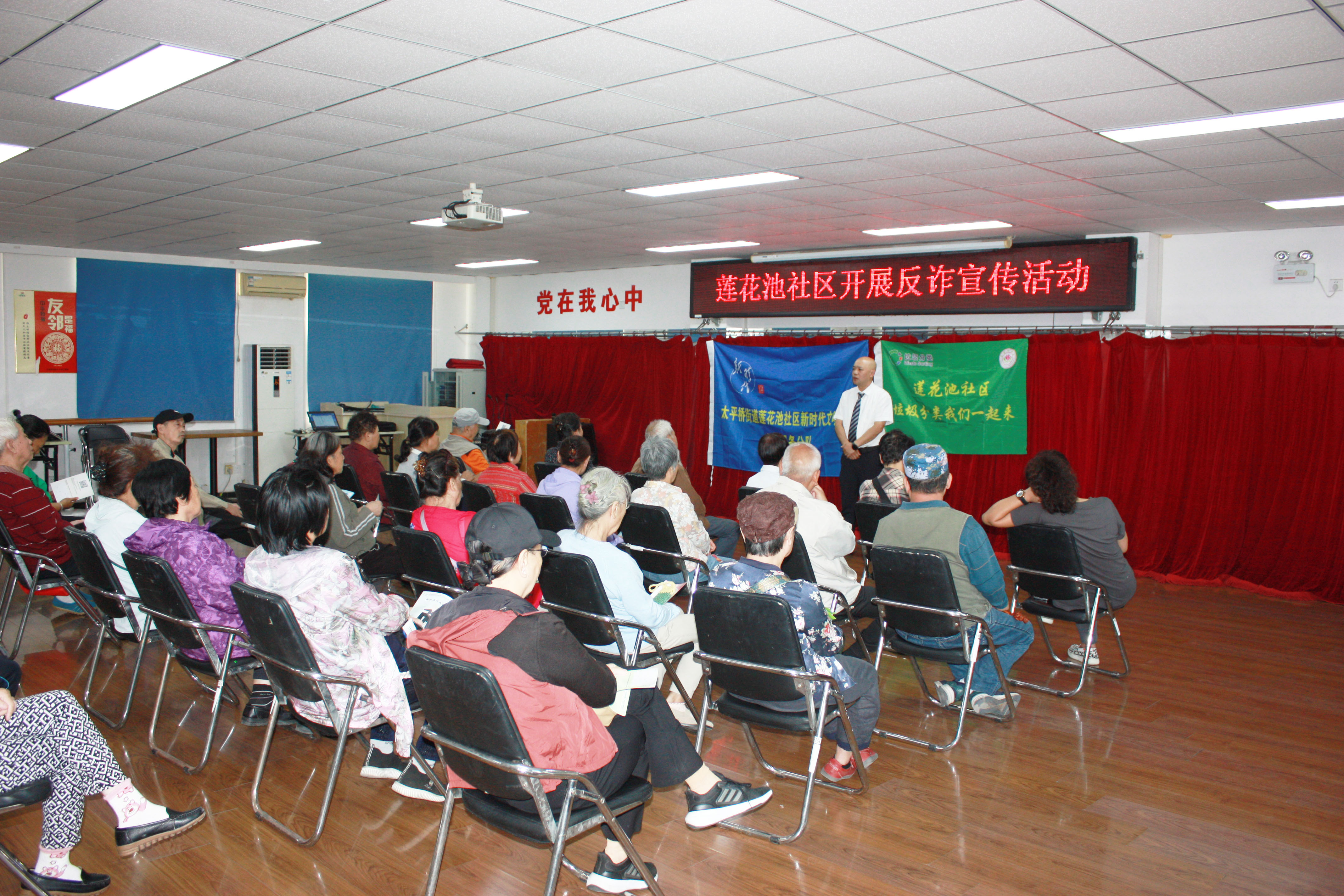 莲花池社区特邀北京中水物业管理有限公司总经理助理杨乃锦对社区居民进行消防安全知识培训。培训中重点提醒住户要如何预防家用电器着火以及出现火情的正确处理方法,正确使用消防器材,发生火灾时要保持冷静,掌握正确的逃生方式。