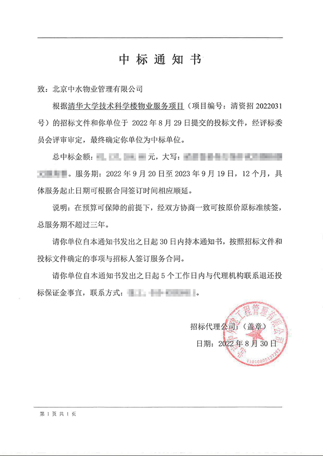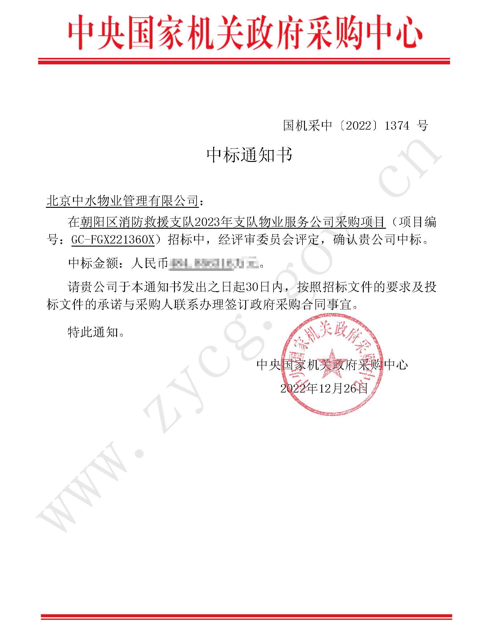 朝阳区消防救援支队2023年支队物业服务公司采购项目成功中标
