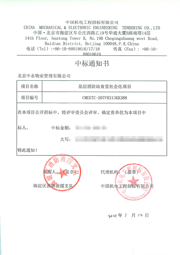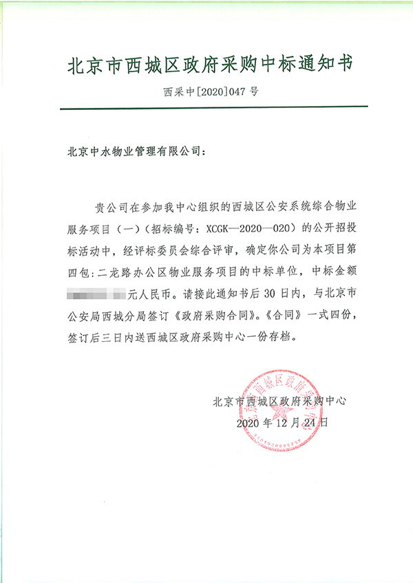 新壁街办公区 、西长安派出所 、东新帘子办公点物业服务项目成功中标