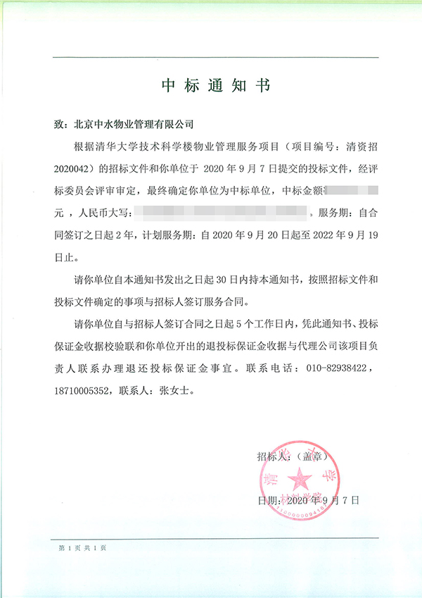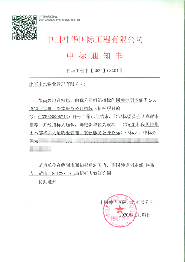 国神集团本部华实大厦物业管理、餐饮服务项目成功中标
