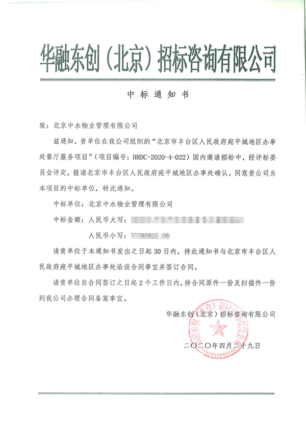 北京市丰台区人民政府宛平城地区办事处餐厅服务项目成功中标