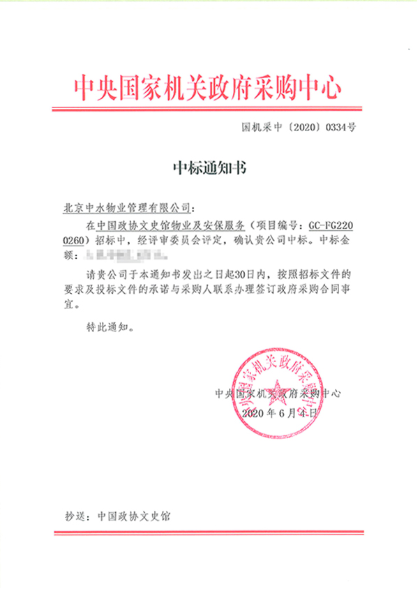 中国政协文史馆物业及安保服务项目成功中标