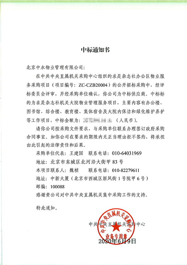 求是杂志社办公区物业服务采购项目成功中标