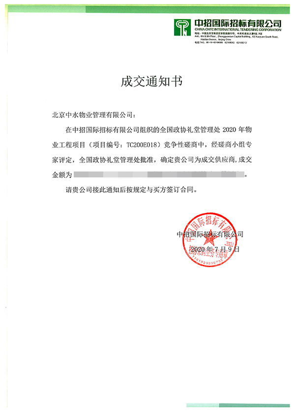 全国政协礼堂管理处2020年物业工程项目成功中标