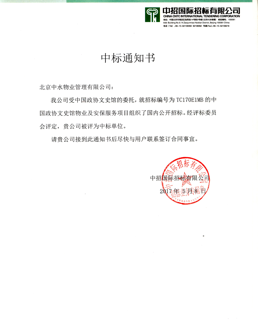 中国政协文史馆物业及安保服务项目成功中标
