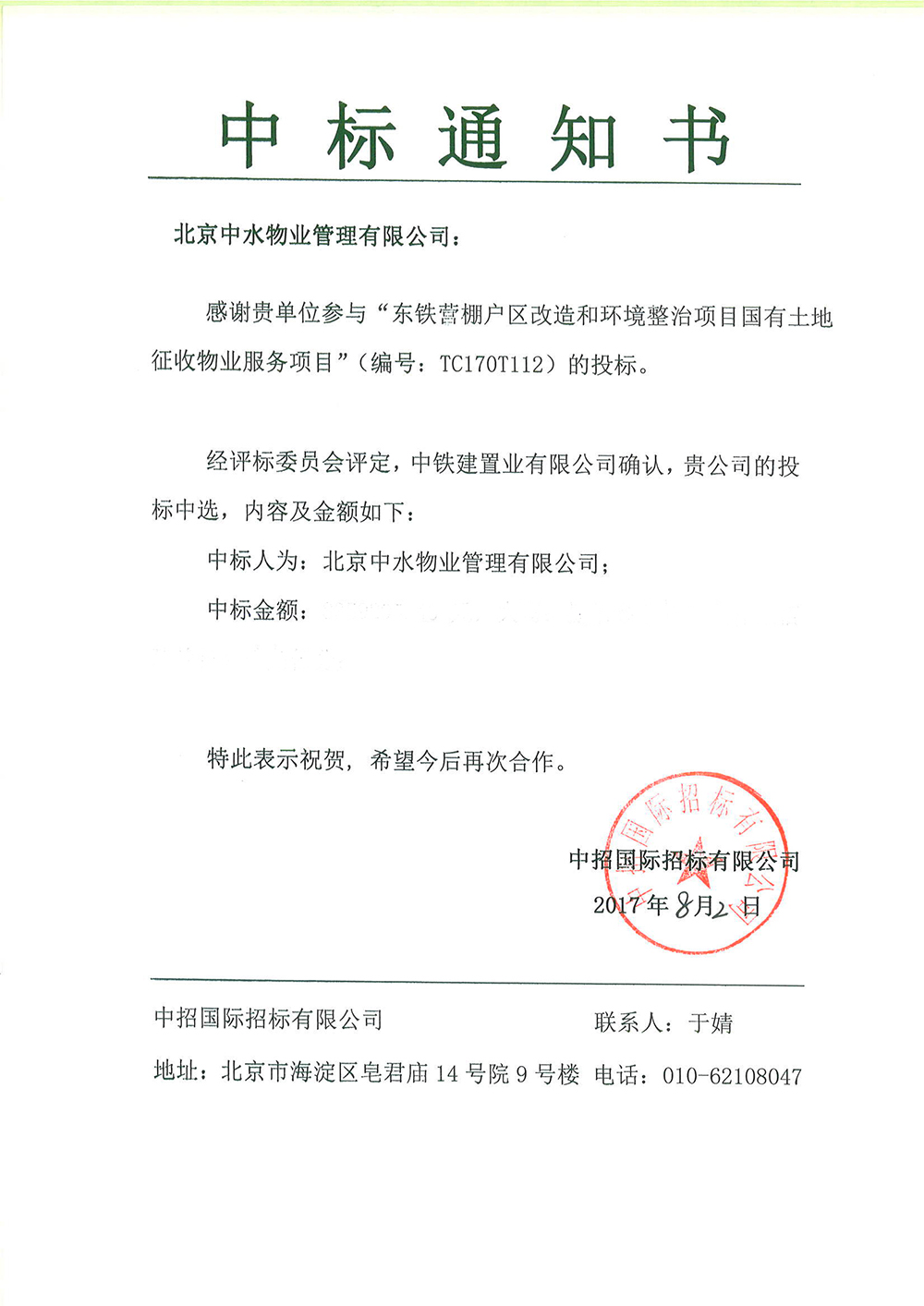 东铁营棚户区改造和环境整治项目国有土地征收物业服务项目成功中标