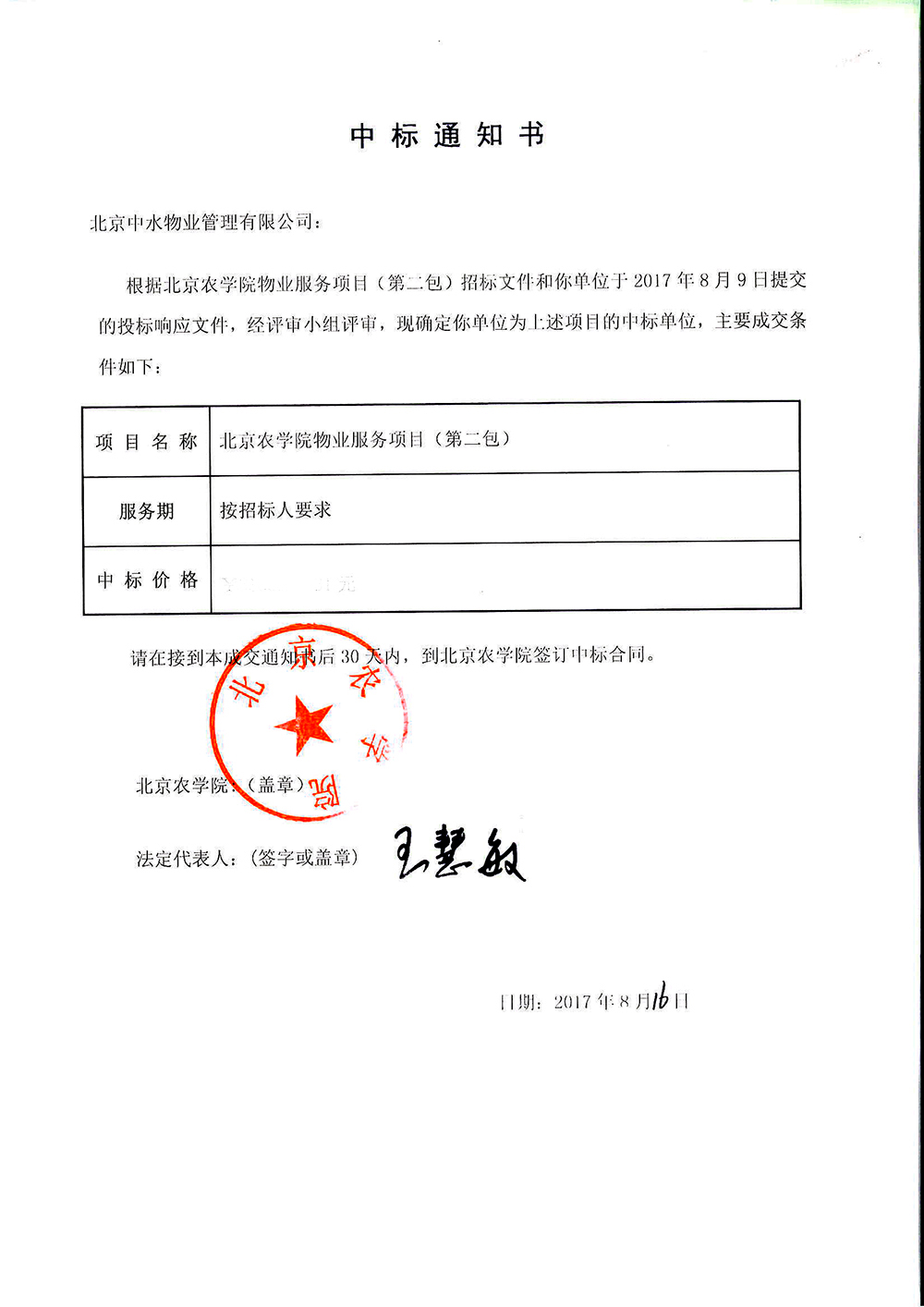 北京农学院物业服务项目成功中标