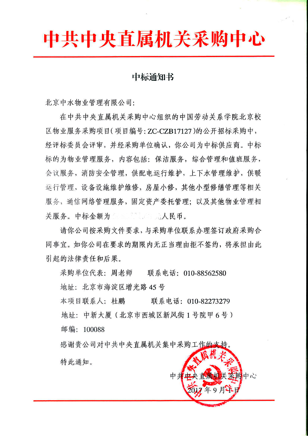 中国劳动关系学院北京校区物业服务项目成功中标