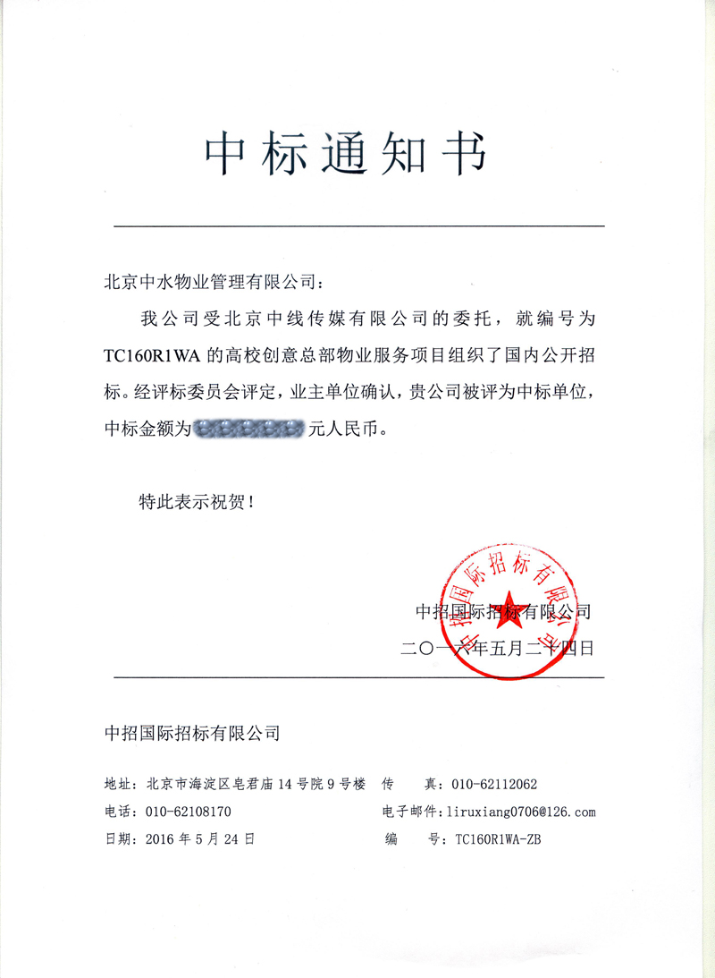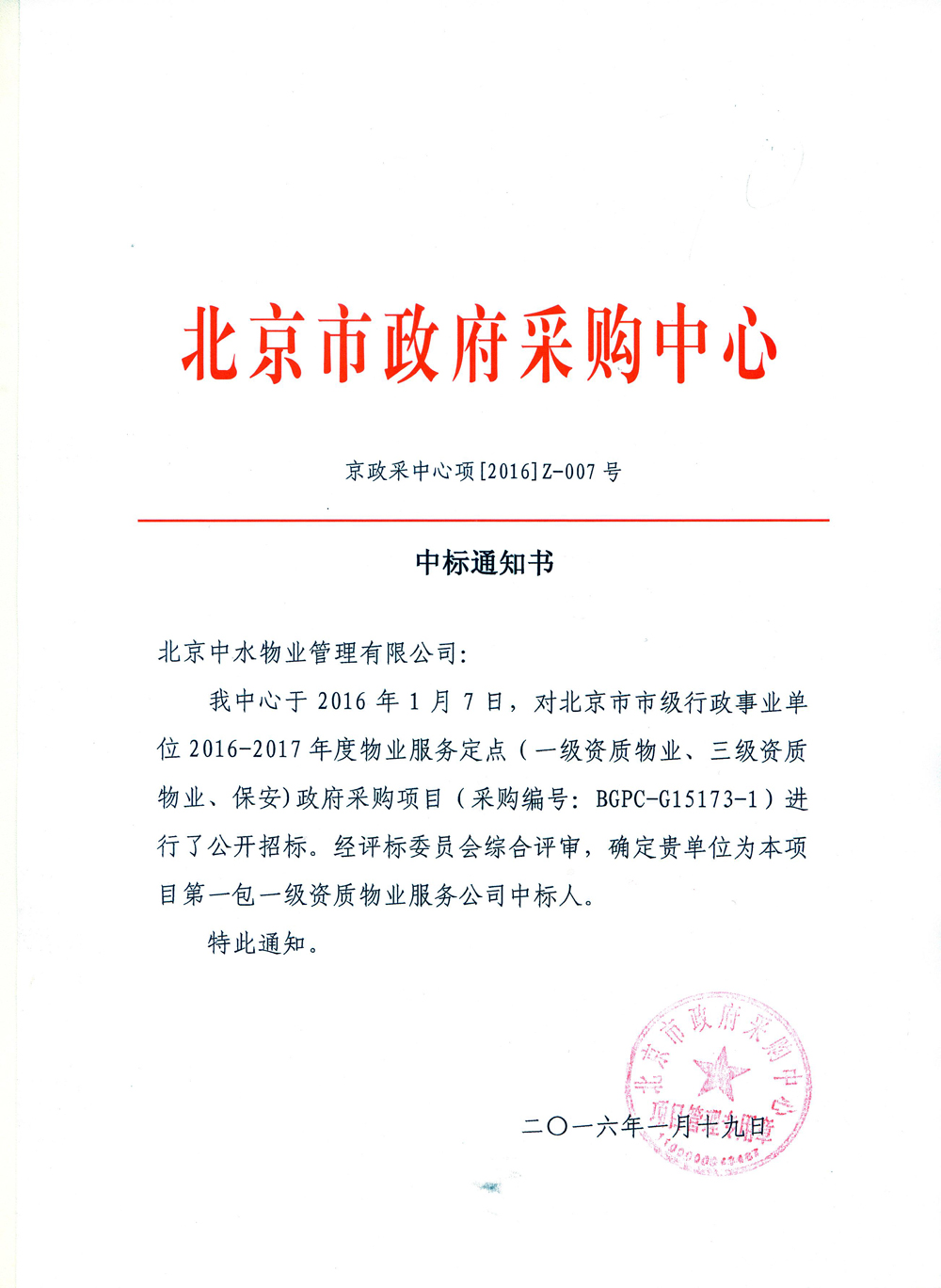 成功获得北京市政府采购中心一级物业服务公司供应商资格