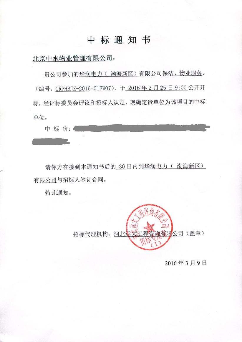 华润电力(渤海新区)项目成功中标